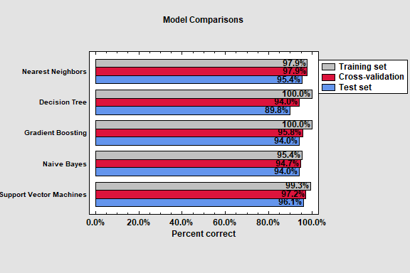 Statgraphics contains a large number of procedures for machine learning. Machine learning is a branch of AI (Artificial Intelligence) where algorithms are used to recognize patterns in data. It is used in many fields, including speech recognition, email filtering, medicine, agriculture, and quality assurance.