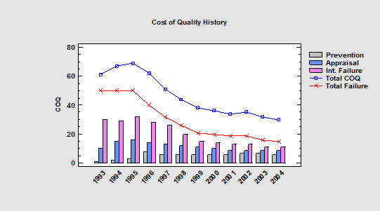 The Cost-of-Quality Trend Analysis illustrates the costs of poor quality by constructing a chart displaying prevention, appraisal, and failure costs over time. In addition, statistical runs tests are performed to determine whether or not significant trends exist in any of those time series.