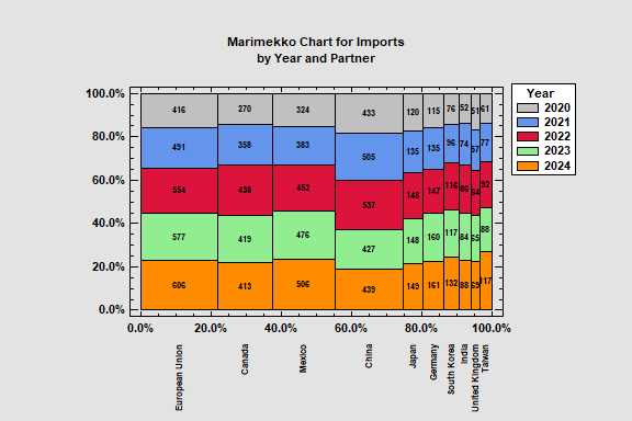 The second example shows U.S. imports by trading partner for 5 recent years.