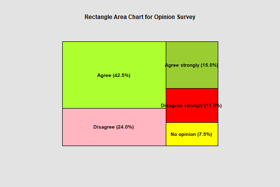 A rectangle area chart is a barchart is which the areas are scaled according to the data values. The chart below is a typical example created to display the results of a survey question.