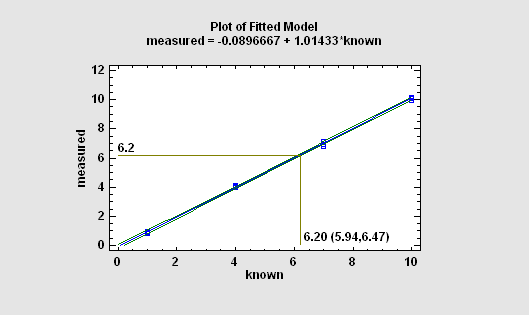 In a typical calibration problem, a number of known samples are measured and an equation is fit relating the measurements to the reference values. The fitted equation is then used to predict the value of an unknown sample by generating an inverse prediction (predicting X from Y) after measuring the sample.