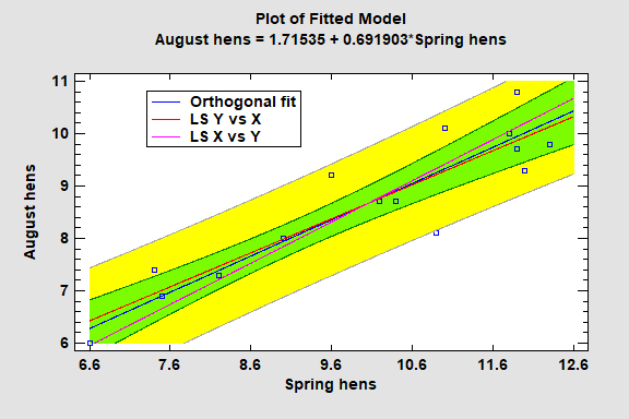 The Orthogonal Regression procedure is designed to construct a statistical model describing the impact of a single quantitative factor X on a dependent variable Y, when both X and Y are observed with error. Any of 27 linear and nonlinear models may be fit. Tests are run to determine the statistical significance of the model. The fitted model may be plotted with confidence limits and/or prediction limits. Residuals may also be plotted and unusual observations identified.
